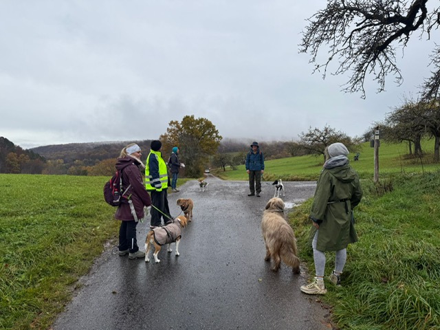Schnell wurde ein Charity-Trail organisiert, bei dem aus Norden und Süden Richtung Bebenhausen getrailt wurde. Dort warteten fleißige Pettrailer-Auszubildende mit Punsch und Keksen als Stärkung. Zwei Ehrenamtliche der Tierrettung waren auch dabei und haben den Teilnehmern von ihren Einsätzen erzählt.